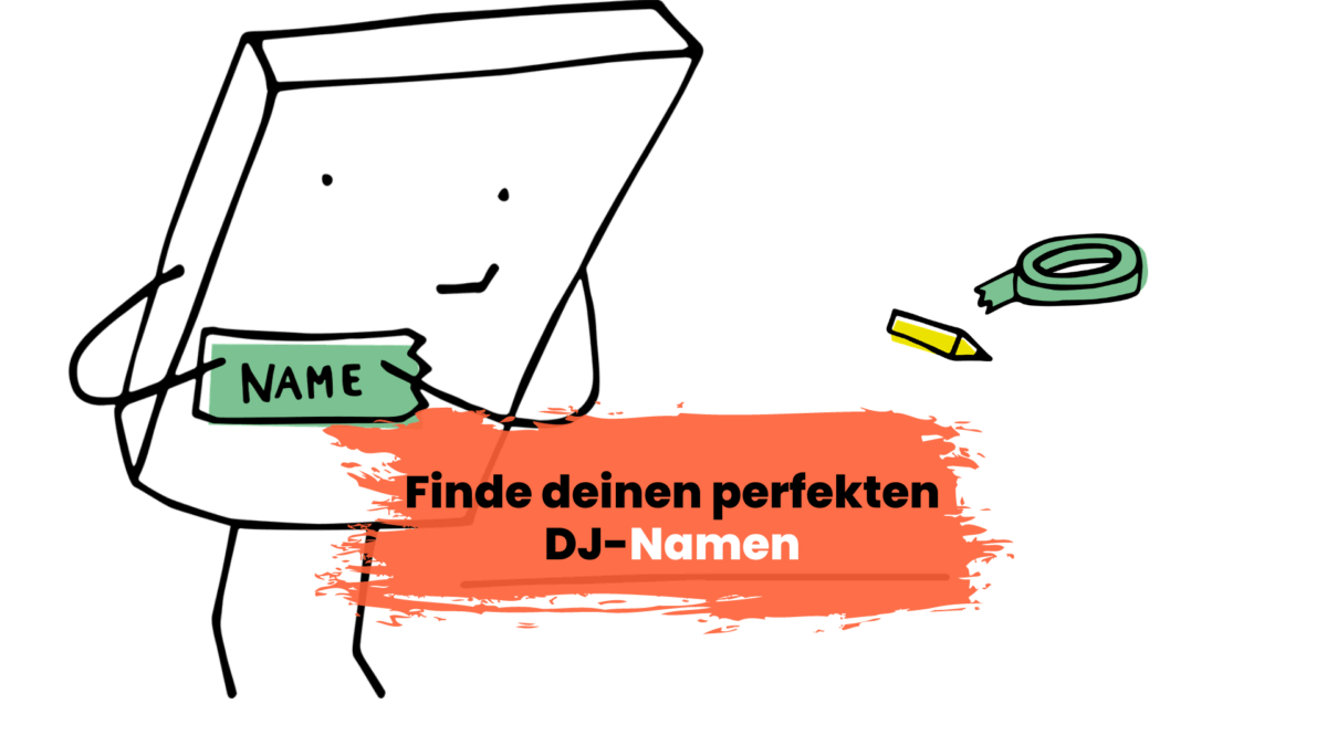 • Vielleicht willst du dich auch erstmal von einem der zahlreichen DJ-Namen-Generatoren inspirieren lassen. Auf Webseiten wie Der-Perfekte-DJ erhältst du auf Button-Klick mehr oder weniger verwertbare Vorschläge wie Mighty Insect oder Shitty Neon.