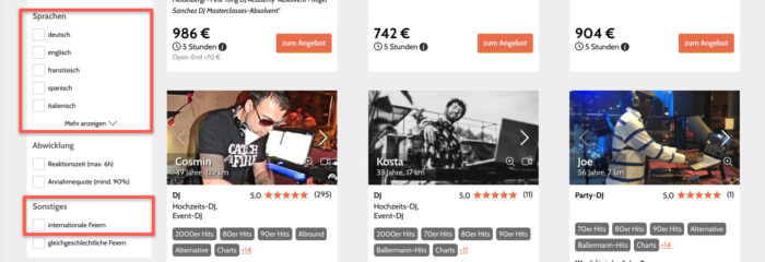 Internationale DJs finden mit dem Filter “Fremdsprachen”