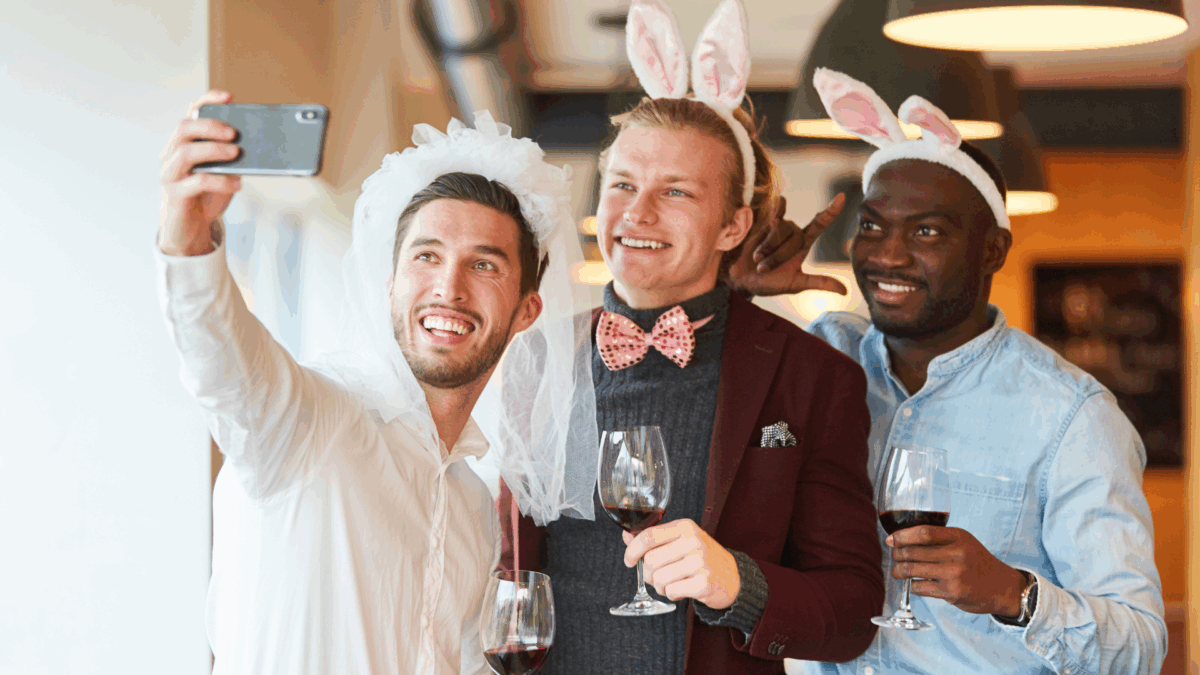 - Friends Make Selfie at Bachelor Party: Canva