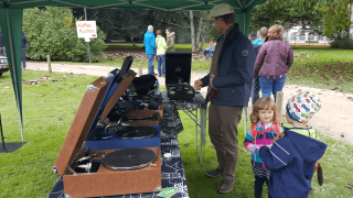 Ich bin der Dominik ( DJ DOKO analog (Charity) ) und lege seit ein paar Jahren als Grammo- DJ Schellackplatten bei diversen Oldtimertreffen und städtische Festen auf. Die Grammophone sind aus meiner Sammlung und mit 350 Schellack-Platten bin ich recht gut bestückt.
