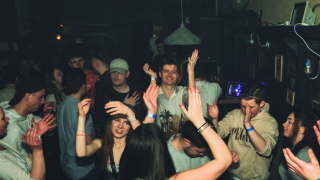 Oskar und ein Lichttechniker beim Auflegen in einer Braunschweiger Bar.