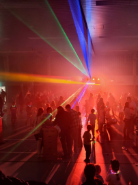 Komplettes Musikequipment: PA-Anlage, Lichtequipment, Nebel- und Lasershows inklusive.