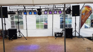 Paket2 - Hochzeit, besondere Events bis 80/100 Personen: 2 X Tonsäule je 500W, 4 PAR, 2-3 Lichteffekte und 2 MovingHeads auf beleuchteten Säulenständer