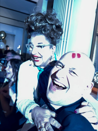 Seitdem performe ich, schreibe und kreiere Shows für Palazzo, wunderbarer Veranstalter der verrückten, durchgeknallten "Spiegelzelt" Dinner Shows. Seit über 20 Jahren schreibe und konzipiere ich Shows für Palazzo in Städten wie Stuttgart, Nürnberg, München, Berlin, Wien und Hamburg, nur um ein paar zu nennen, sowie neue Charaktere wie Doris Rottweiler und Roxy Malone.