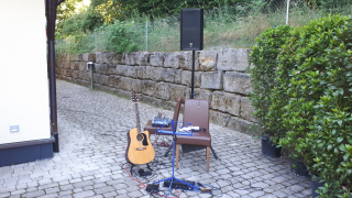 Meine Technik reicht locker aus, um bis zu 300 Leute von der Bühne herunter zu beschallen, ich kann aber auch klein & fein in Deinem Wohnzimmer auftreten. Für die Livemusik brauche ich dabei auch nicht viel Platz, ich liebe es aber (natürlich) auf einer Bühne zu stehen!